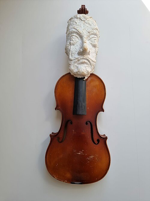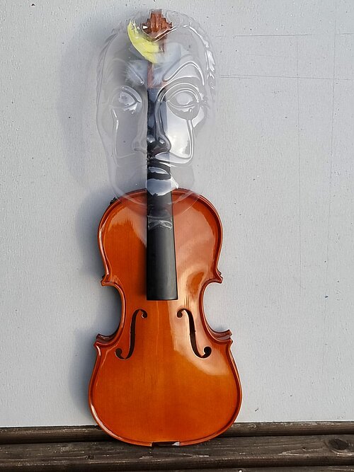 ![]() "Körper und Geist 1" Transparenz für offenes und freies Denken Material:Violine, Klarsichtmaske Signiert: Hw.22 |