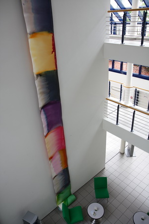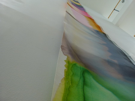 faszinieren durch breite Farbverläufe, indem der Zellstoff in Farbwannen hineingestellt wird, sich durch die Kapillarwirkung voll saugt und mit Farbe durchtränkt.Bewusst aber greift der Künstler in den Prozess ein, versucht den richtigen Moment abzuwarten, um das Wesentliche hervorzukehren.Den wesentlichen Moment der