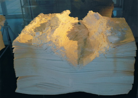 Unvoreingenommen, roh, direkt, in seiner Konsistenz belassen wird es gerissen, collagiert und weiß zerfasert, zur vertikalen Säule, zur horizontalen Fläche.