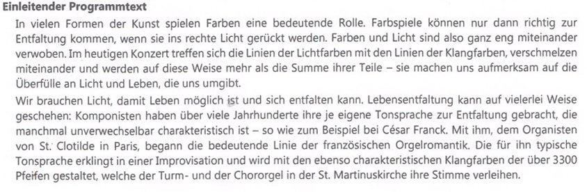 – und Orgelimprovisation auch einige Gregorianische Gesänge geben,
