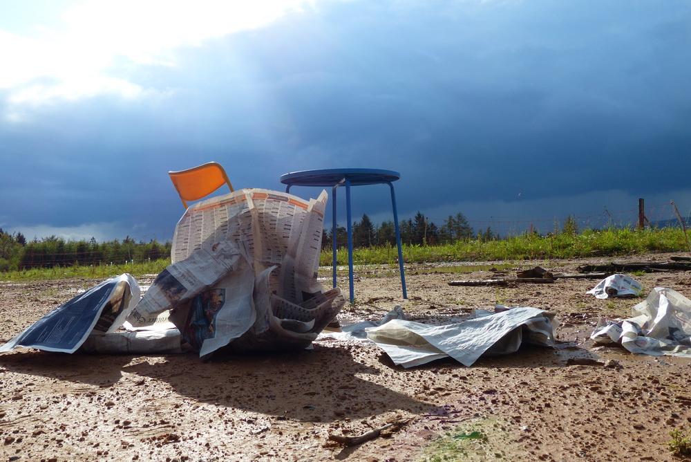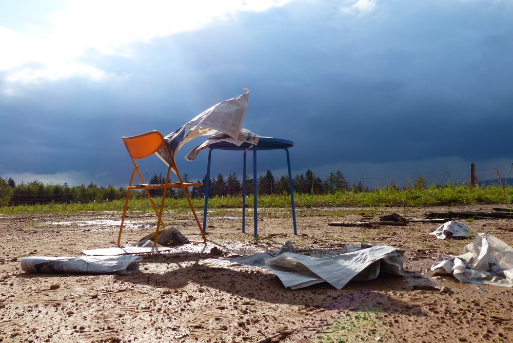 Auf freiem Hügel wird auf einem pultartigen Podest jeden Morgen